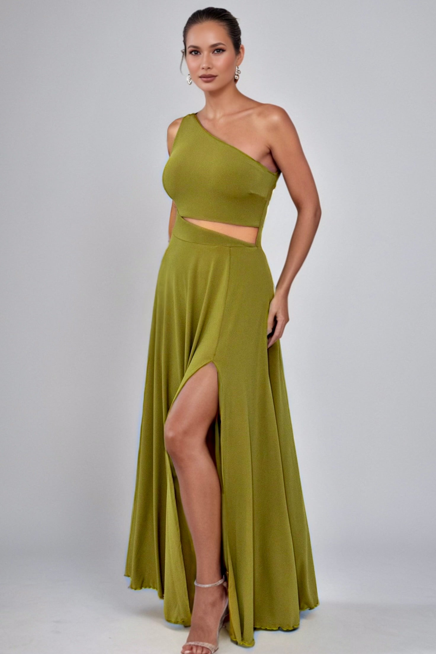 Camila Asymmetric Neckline Maxi Dress with Cutout-CUSTOMIZED COLOR