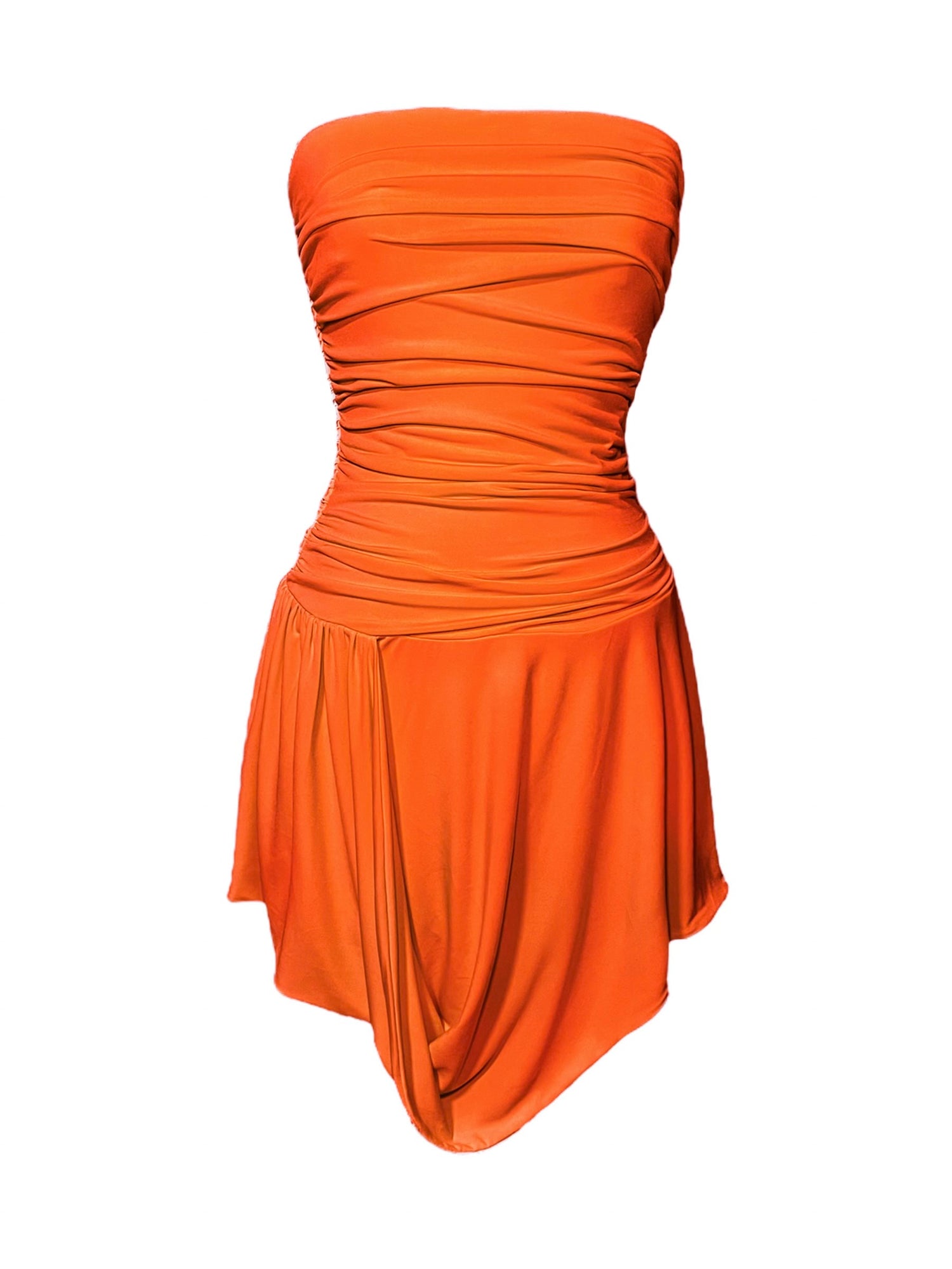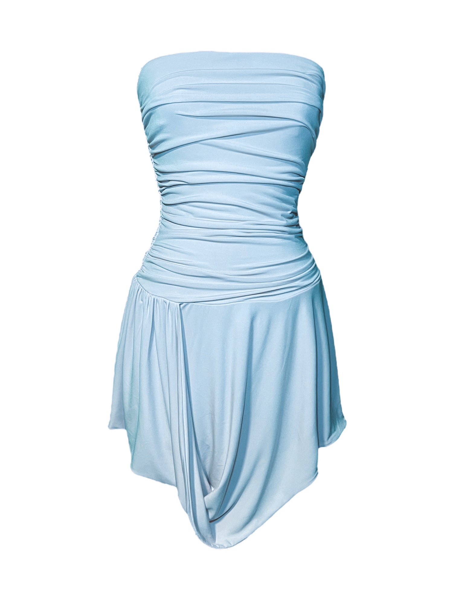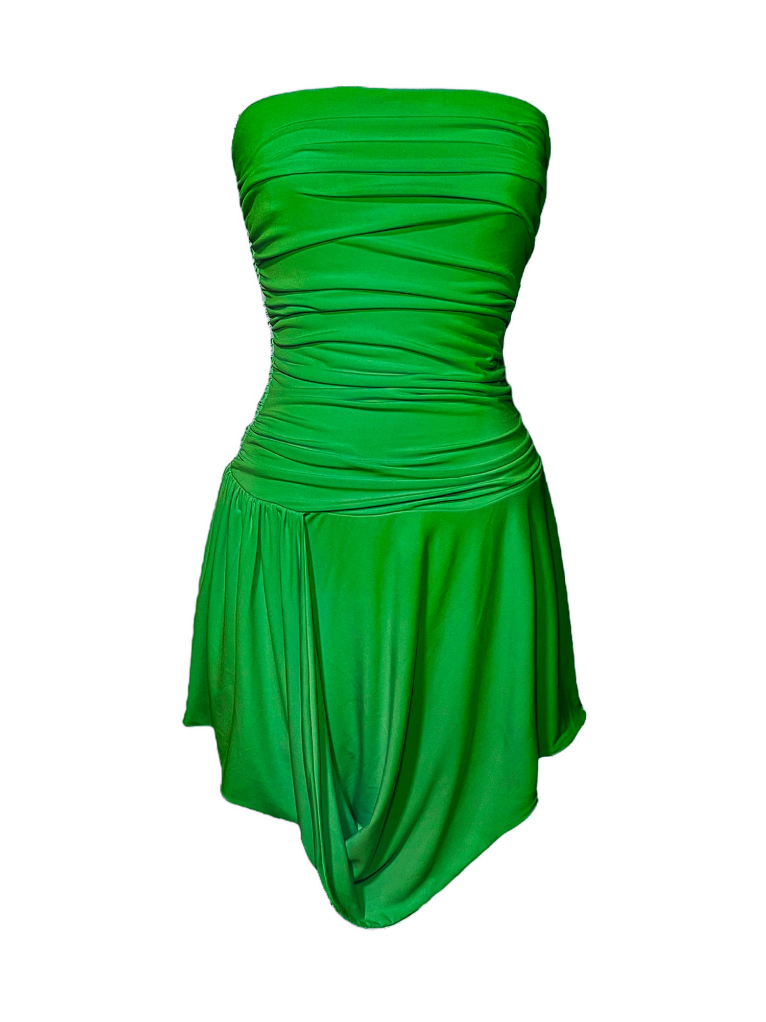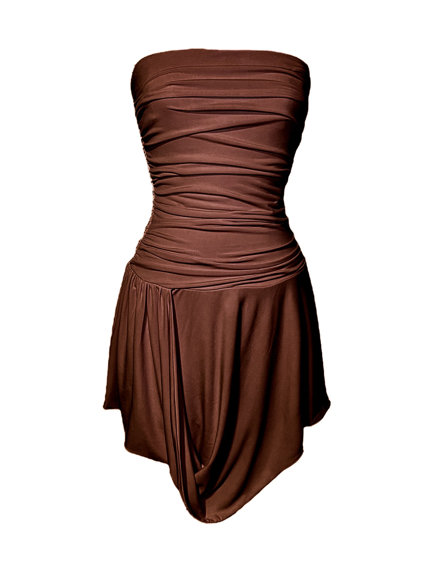 Designed by Maritza Camareno, the Nina dress is your passport to effortless elegance. With its flattering strapless neckline, sculpted ruching, and dramatic draped hem, this dress molds to your silhouette while letting you mold it to your lifestyle.