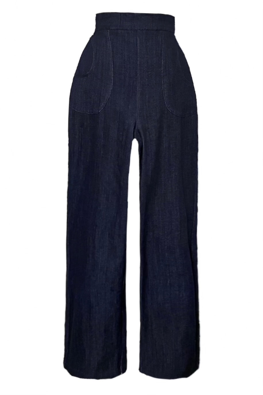 Pantalón Palazzo de Tiro Alto en Denim Azul Oscuro – Style It Up